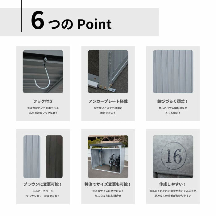 ・小型で組立式、自転車置き場や農機具置場、作業スペースに最適。