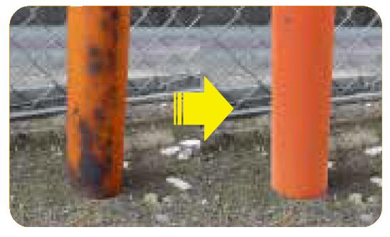 ●下地亜鉛メッキ+静電粉体塗装を施した埋込式の支柱に対して、埋め込んだ際の根本300mm部分に、特殊表面処理を施して耐食性を高めた機能性支柱。