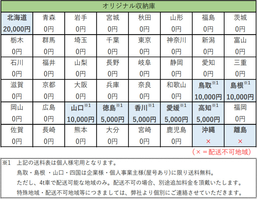 【北海道:20,000円、山口・鳥取・島根:10,000円、四国:5,000円の送料がかかります】