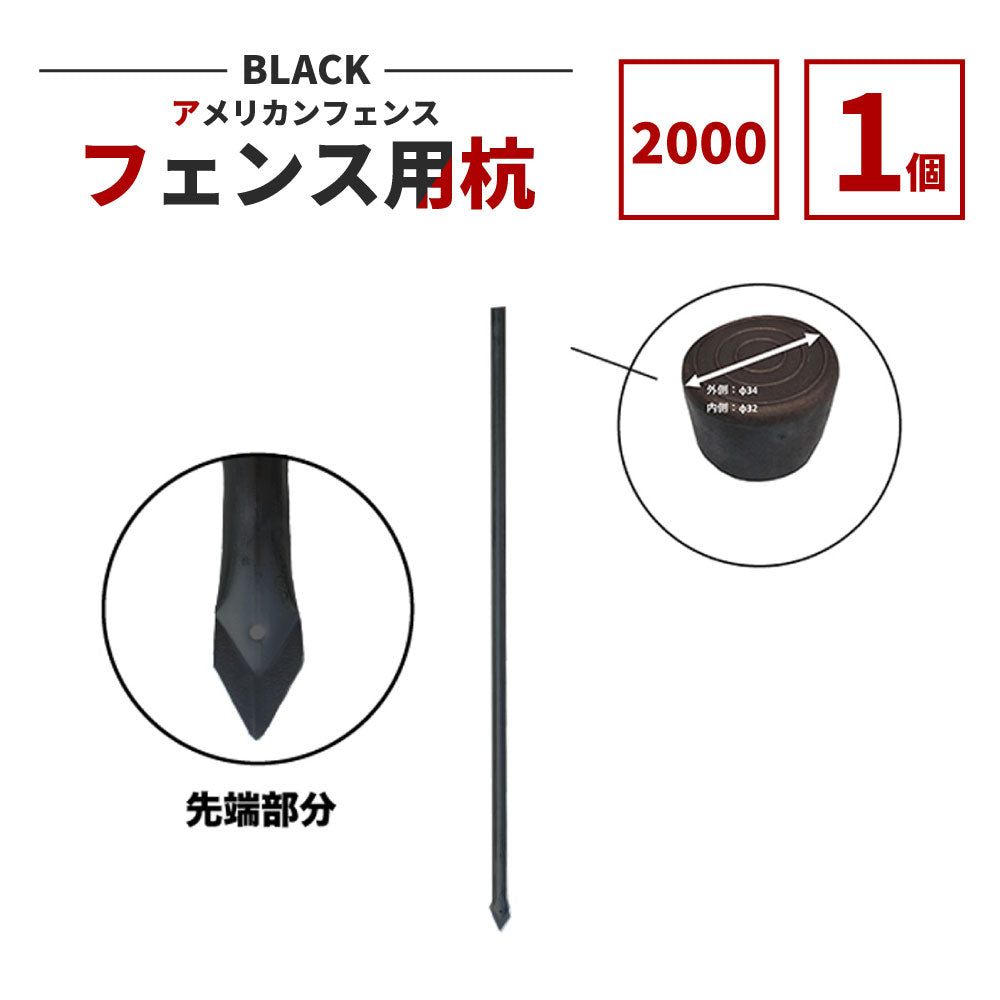 アメリカンフェンス用杭 ブラック Φ31.8 H2000 AFK-BK2000