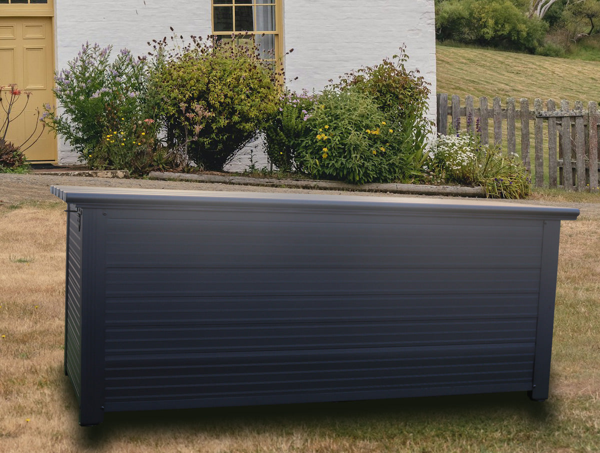 ベンチボックス BB120-BK 軽さと耐久性が自慢の アルミ製 収納ボックス 便利な野外ベンチに!お庭周りの収納箱として! 南京錠 取付け金具付きで 安心安全! 軽い 軽量 収納 ソフトクローズ シンプル おしゃれ アルミ 小さい 小さいサイズ 静か ゆっくり 閉まる