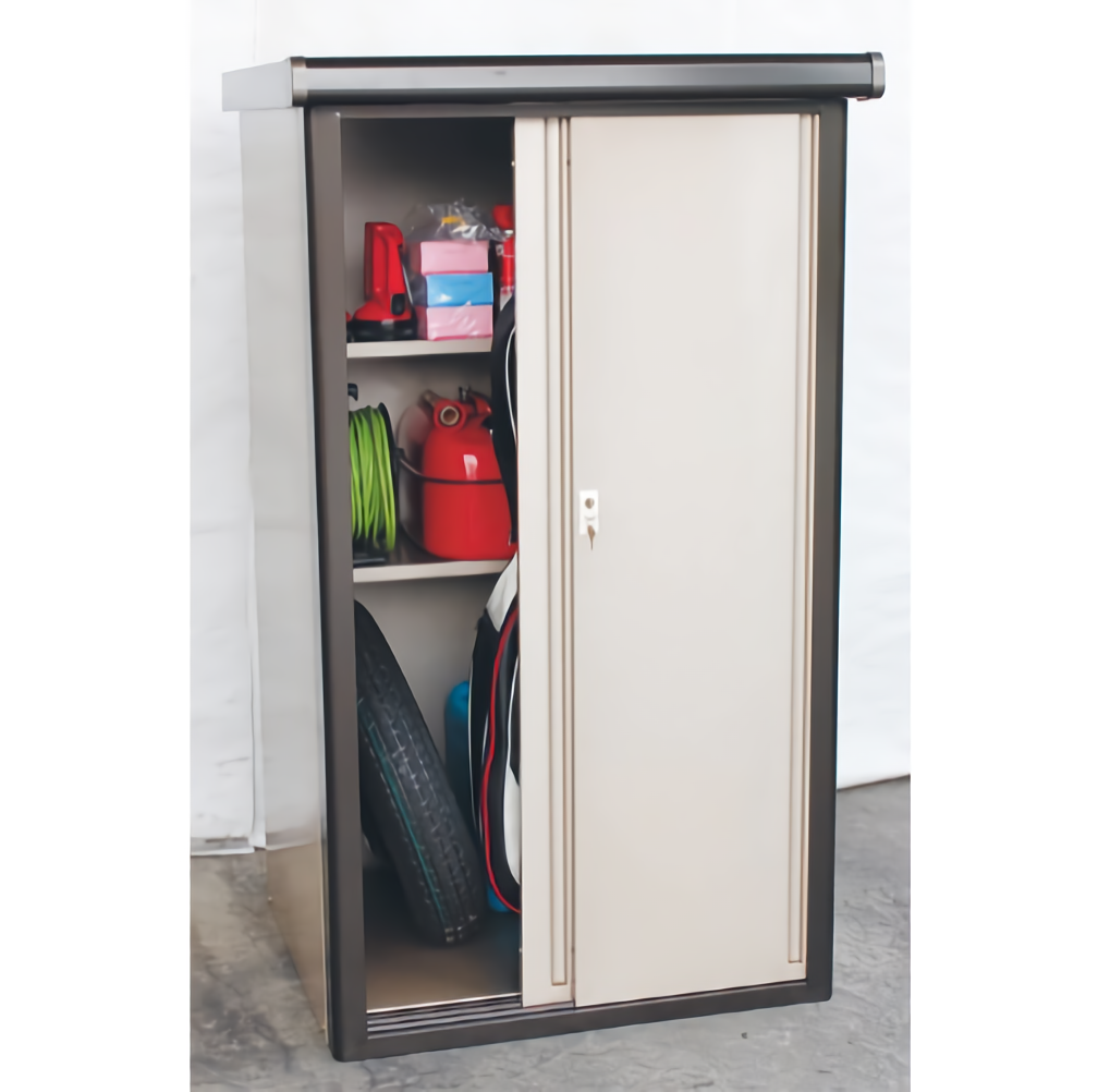 ・コンパクトながらもスチール製で頑丈な構造が特徴で、家庭用物置やガレージ、軒下の収納として最適です。